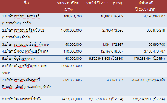 ทั้งนี้ ผลประกอบ ปี 2553 กลุ่มเชฟรอนมีรายได้ 54,736.3 ล้านบาท กำไรสุทธิ 10,229.7 ล้านบาท