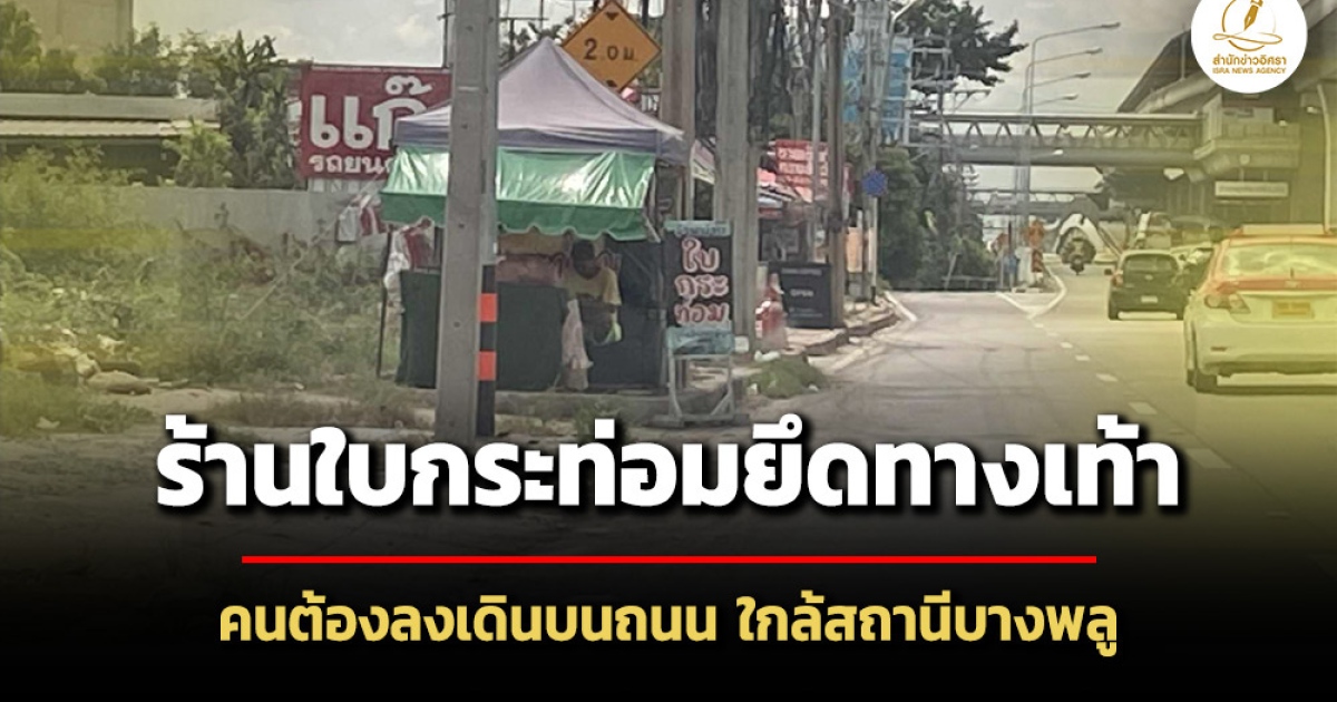 ส่งภาพร้องเรียน! ร้านขายใบกระท่อมยึดทางเท้าถ.รัตนาธิเบศร์ อ.บางบัวทอง จ.นนทบุรี ใกล้ปั๊มพีที แยกบางพลู ชาวบ้านเดินไปขึ้นรถไฟฟ้าสีม่วงต้องเลี่ยงลงพื้นถนนนานนับเดือน ด้าน หน.หมวดทางหลวงบางใหญ่บอกเคยไล่รื้อถอน แต่มาตั้งอีก จะรีบลงพื้นที่พร้อมจนท.ตร.ตรวจสอบ