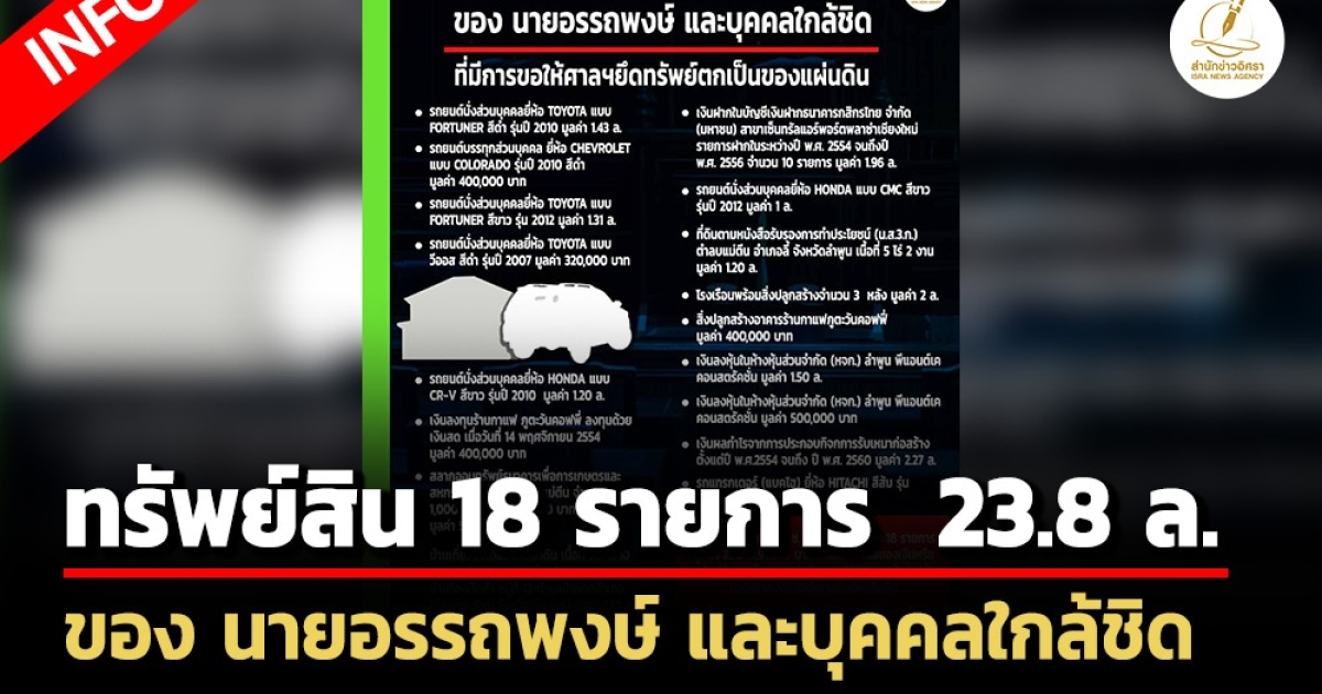 คดีกล่าวหา นายอรรถพงษ์ แซ่แต้ เมื่อครั้งดำรงตำแหน่งนายกเทศมนตรีตำบลแม่ตืน อำเภอลี้ จังหวัดลำพูน ร่ำรวยผิดปกติ ทรัพย์สินจำนวน 18 รายการ รวมมูลค่า 23.8 ล้านบาท ของ นายอรรถพงษ์ และบุคคลใกล้ชิด มีการขอให้ศาลฯยึดทรัพย์ตกเป็นของแผ่นดิน สำนักข่าวอิศรา จึงนำข้อมูล มารวบรวมนำเสนอผ่านภาพอินโฟกราฟิก ดังนี้
