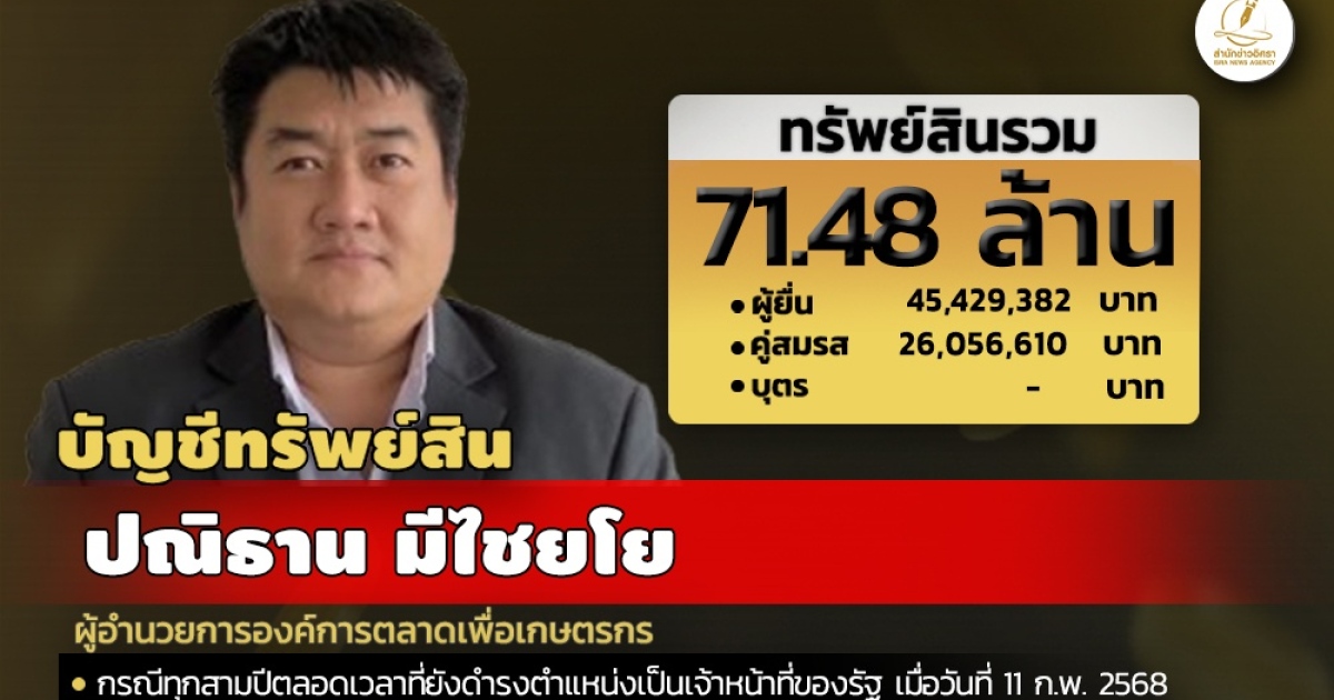 สำนักงานคณะกรรมการป้องกันและปราบปรามการทุจริตแห่งชาติ (ป.ป.ช.) เปิดเผยบัญชีแสดงทรัพย์สินและหนี้สินของ อนุวัธ วงศ์วรรณ นายกอบจ.แพร่ ทรัพย์สิน 593.39 ล. ประกอบด้วย เงินฝาก 16 บัญชี มูลค่ารวม 6.98 ล. ที่ดิน 4 แปลง มูลค่ารวม 3.36 ล. ผู้ยื่นแจ้งมีรายได้ต่อปี 3.40 ล.