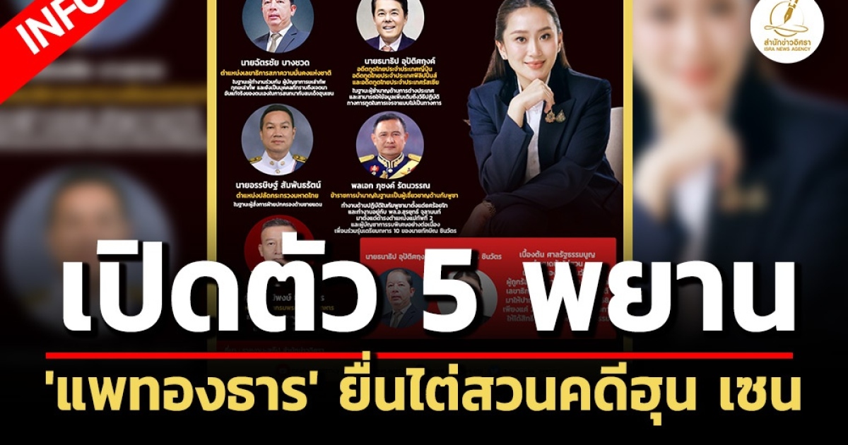สำนักข่าวอิศรา รายงานไปแล้วว่า ก่อนหน้านั้น น.ส.แพทองธาร ชินวัตร ได้ยื่นคำชี้แจงคดีนี้ต่อศาลรัฐธรรมนูญ โดยยืนยันว่า การกระทำของตนเองตามข้อกล่าวหาของผู้ร้อง ไม่เป็นการฝ่าฝืน หรือไม่ปฏิบัติตามประมวลจริยธรรมของข้าราชการการการเมือง พ.ศ. 2564 แต่อย่างใด และได้ขออนุญาตให้ไต่สวนพยานบุคคลผู้ทรงคุณวุฒิ จำนวน 5 ปาก เพื่อให้ศาลฯ ได้รับทราบข้อเท็จจริงอย่างรอบด้าน โดยคำนึงถึงบริบททางภูมิรัฐศาสตร์และประวัติศาสตร์ความขัดแย้งชายแดนไทย-กัมพูชา ที่ดำรงอยู่ต่อเนื่องหลายรัฐบาล และใคร่ขอเรียนเป็นกรณีพิเศษให้ศาลฯ โปรดพิจารณาไต่สวนพยานบุคคลผู้ทรงคุณวุฒิ จำนวน 5 ราย ดังนี้
