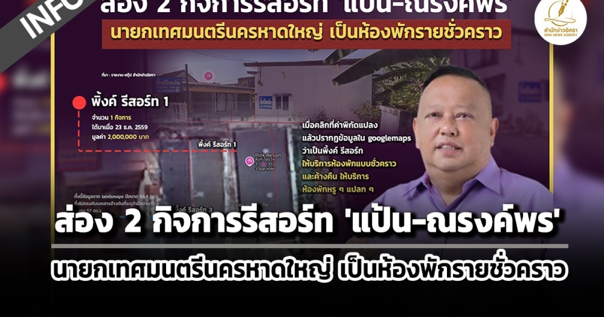 ส่อง 2 กิจการรีสอร์ท 'ณรงค์พร ณ พัทลุง' นายกเทศมนตรีนครหาดใหญ่ ผ่าน google maps เป็นบริการห้องพักรายชั่วคราว-ค้างคืน-ห้องพักหรู ๆ แปลก ๆ รายละเอียดดังนี้