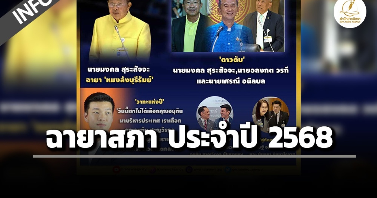 เมื่อวันที่ 29 ธ.ค. 2568 ผู้สื่อข่าวประจำรัฐสภา ร่วมกันตั้ง 'ฉายาสภา' เป็นธรรมเนียมประจำทุกปี เพื่อสะท้อนความคิดเห็นการทำหน้าที่ของฝ่ายนิติบัญญัติทั้ง สส.และ สว. ตลอดปี 2568 ในฐานะที่ติดตามการทำหน้าที่ของ สส. และ สว. มาโดยตลอด ดังนี้