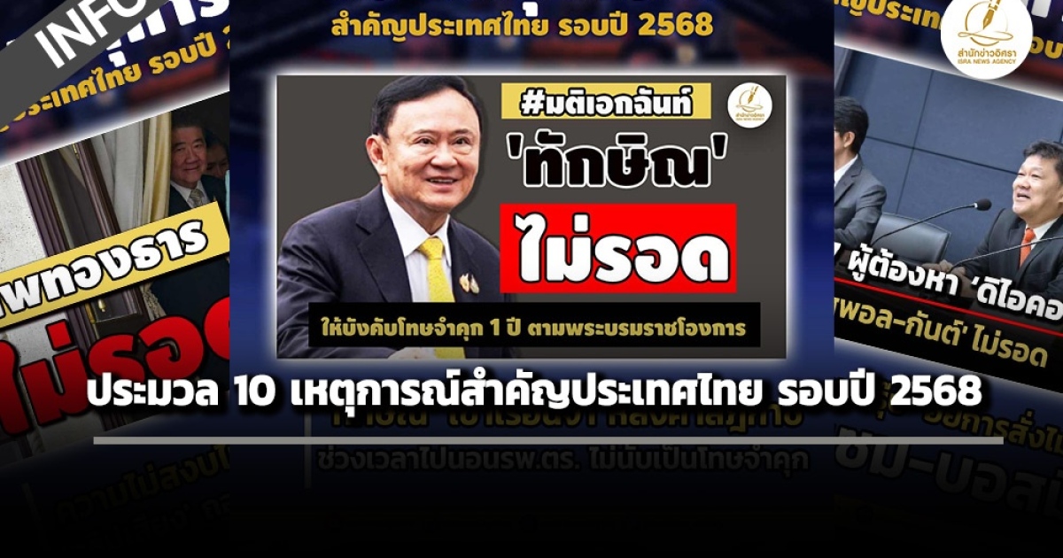 สำนักข่าวอิศรา ประมวล 10 เหตุการณ์สำคัญของประเทศไทยในรอบปี 2568 เพื่อส่งท้ายปีเก่า-ต้อนรับปีใหม่ 2569 มีดังต่อไปนี้