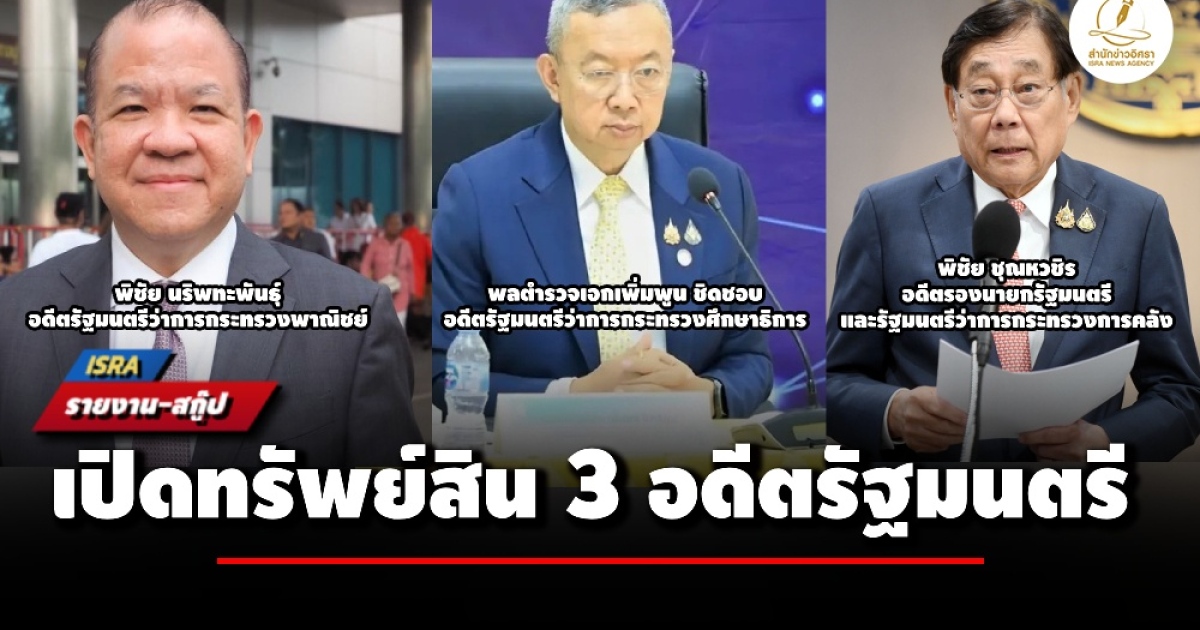 ป.ป.ช. เปิดทรัพย์สิน 3 อดีตรัฐมนตรี 'พิชัย ชุณหวชิร' รองนายกฯ-รมว.คลัง ทรัพย์สิน 247 ล.-'พิชัย นริพทะพันธุ์' รมว.พาณิชย์ ทรัพย์สิน 505 ล.-'พลตำรวจเอกเพิ่มพูน ชิดชอบ' รมว.ศึกษาฯ ทรัพย์สิน 78 ล.