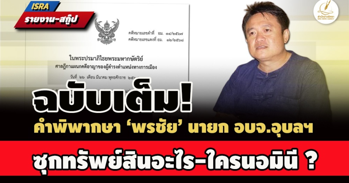 เปิดคำพิพากษาฉบับเต็ม คดี ‘พรชัย โควสุรัตน์’ นายก อบจ.อุบลราชธานี จงใจยื่นบัญชีทรัพย์สินเท็จ ศาลฎีกาฯสั่งจำคุกจริง 2 เดือนนับโทษจากคดีเก่าดูรายละเอียดปกปิดอะไร ใช้ใครเป็นนอมินีบ้าง ?