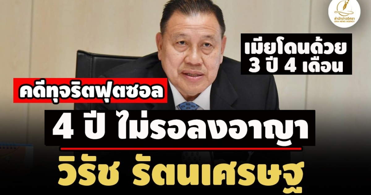 ศาลฎีกาแผนกคดีอาญาผู้ดำรงตำแหน่งทางการเมือง อ่านคำพิพากษาคดีทุจริตฟุตซอล วันนี้ สั่งลงโทษจำคุก 4 ปี วิรัช รัตนเศรษฐ สส.บัญชีรายชื่อ พปชร. ไม่รอลงอาญา -เมียโดน 3 ปี 4 เดือน วางหลักทรัพย์ 4 แสนได้ประกันตัว