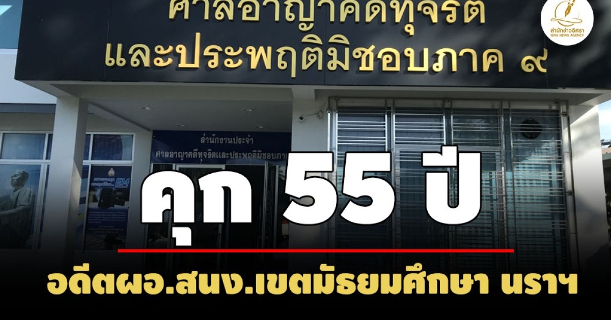 ป.ป.ช.เป็นโจทก์ ยื่นฟ้องคดีเอง! เผยคำพิพากษาศาลอาญาคดีทุจริตประพฤติมิชอบภาค 9 ลงโทษ 'ธนู นูนน้อย' อดีตผอ.สำนักงานเขตพื้นที่มัธยมศึกษา 5 จ.นราธิวาส จำคุก 55 ปี ติดจริง 50 จัดจ้างก่อสร้างหลังคาคลุมลานอเนกประสงค์ 11 โรงเรียน เอื้อประโยชน์ผู้รับเหมา พวกนับสิบรายรวมเอกชน โดนด้วยคนละหลายสิบปี