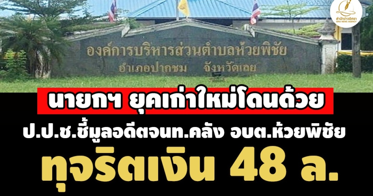 สำนักข่าวอิศรา (www.isranews.org) รายงานว่า เมื่อวันที่ 8 ตุลาคม 2568 สำนักงานคณะกรรมการป้องกันและปราบปรามการทุจริตแห่งชาติ (ป.ป.ช.) เผยแพร่มติคณะกรรมการ ป.ป.ช. ชี้มูลความผิด นางสาวทิวาภรณ์ บัวรมย์ นักวิชาการเงินและบัญชีชำนาญการ รักษาราชการแทนผู้อำนวยการกองคลัง องค์การบริการส่วนตำบล (อบต.) ห้วยพิชัย อำเภอปากชม จังหวัดเลย กับพวก ทุจริตเบียดบังเงินงบประมาณขององค์การบริหารส่วนตำบลห้วยพิชัย รวมเป็นเงินจำนวนทั้งสิ้น 48,157,674.50 บาท