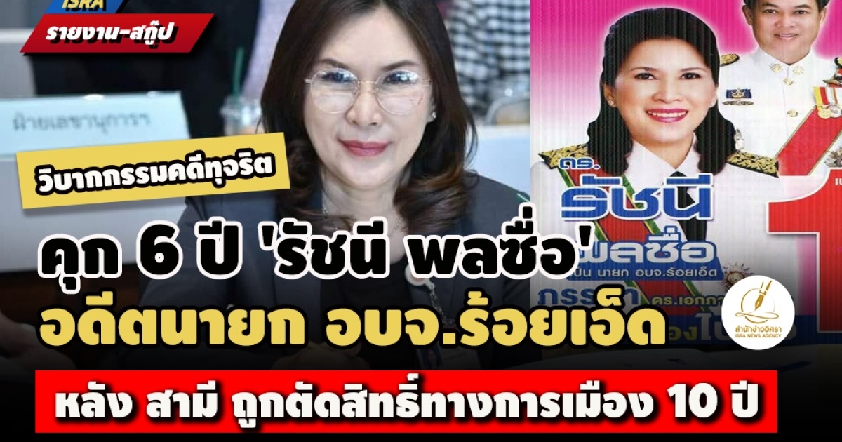 นางรัชนี พลซื่อ อดีตนายกองค์การบริหารส่วนจังหวัด (อบจ.) ร้อยเอ็ด เป็นผู้บริหารองค์กรปกครองส่วนท้องถิ่น (อปท.) อีกราย!