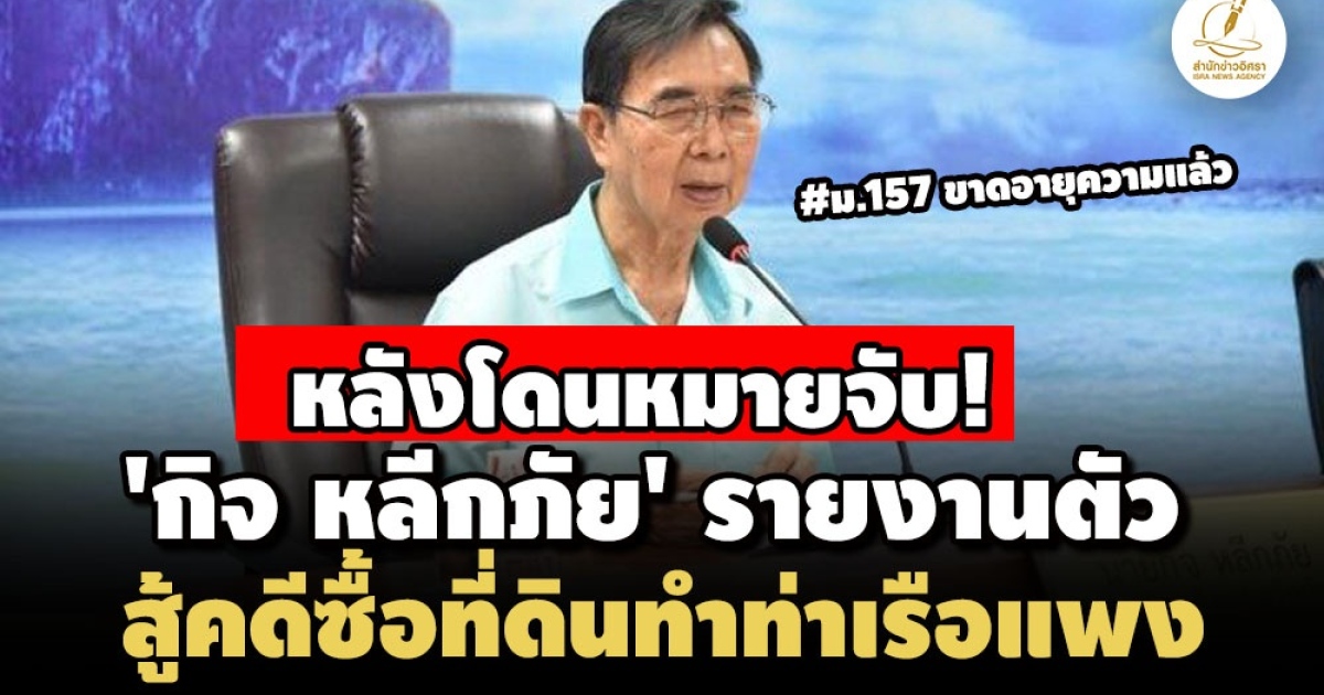 หลังถูกศาลฯ อนุมัติหมายจับ! ล่าสุด 'กิจ หลีกภัย' อดีตนายก อบจ.ตรัง เข้ารายงานตัวส่งฟ้องคดีจัดซื้อที่ดินทำท่าเรือแพง 10 ล.แล้ว เซ็นชื่อ-ยื่นหลักทรัพย์ประกันตัว 3 แสน ได้รับอนุญาต ก่อนเดินทางกลับทันที ขณะที่บทลงโทษตามกฎหมายอาญามาตรา 157 ขาดอายุความแล้ว