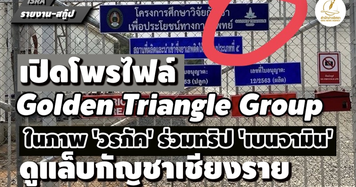 พบว่า ภาพถ่าย ห้อง laboratories ในการวิจัยและพัฒนากัญชาที่มหาวิทยาลัยราชภัฎเชียงราย มีรายชื่อบริษัทเอกชนแห่งหนึ่งปรากฏอยู่คือ Golden Triangle Group