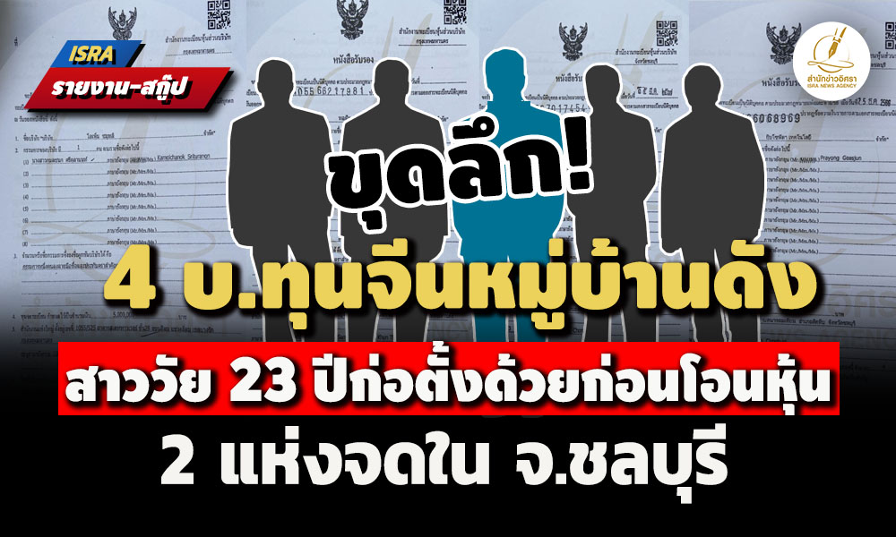 นอกลิสต์ยึดทรัพย์ ปปง.! ขุดละเอียดยิบอีก 4 บริษัทเครือข่ายทุนจีนในหมู่บ้านดัง กรุงเทพฯ พบคนไทยก่อตั้ง สาววัย 23 ปีด้วย ก่อนโอนหุ้น - 2 แห่งจดฯใน จ.ชลบุรี เชื่อมโยงนิติบุคคลคดี ‘สฤษฏ์ อดุลย์พิจิตร’ กับพวก ราย บ.เหลียน เซิง