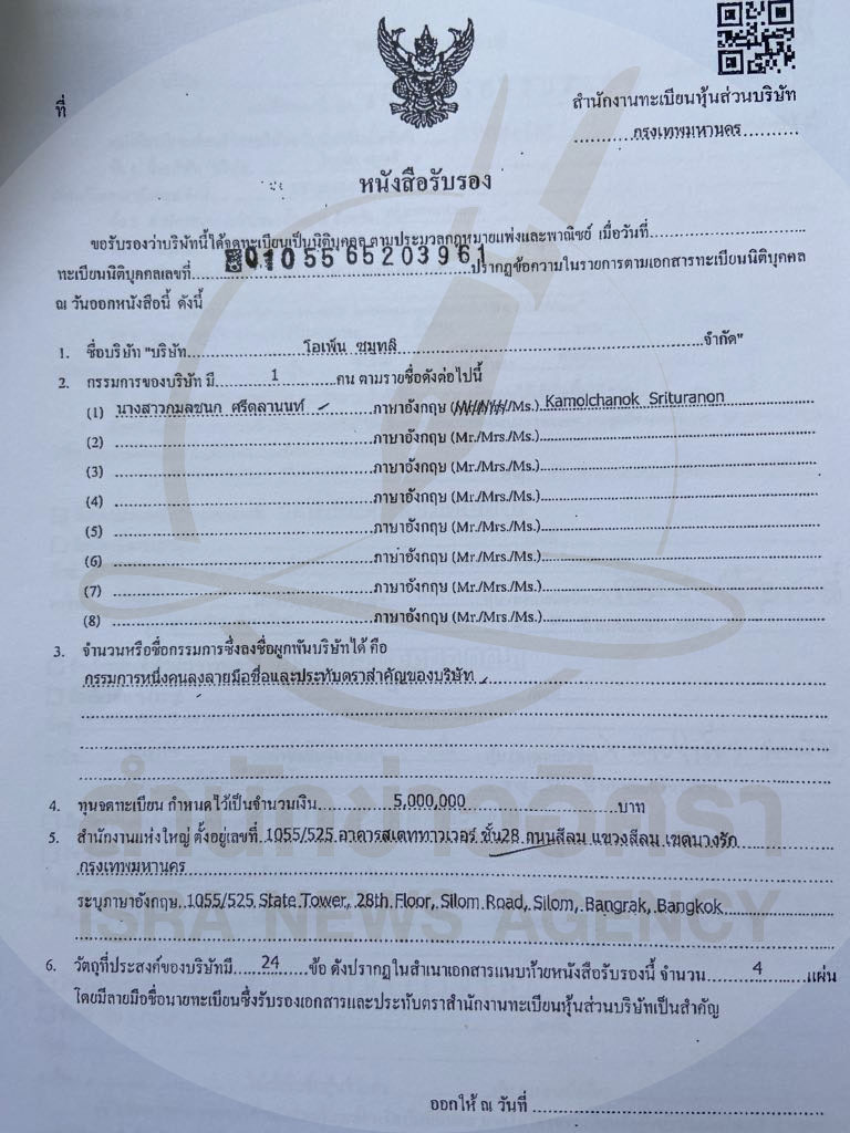 2. บริษัท โอเพ็น ซมูทลิ จำกัด (OPEN SMOOTLY CO., LTD.) จดทะเบียนวันที่ 27 ธันวาคม