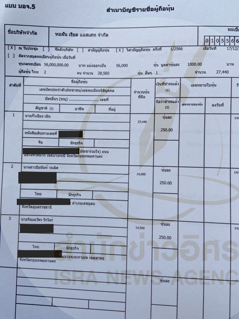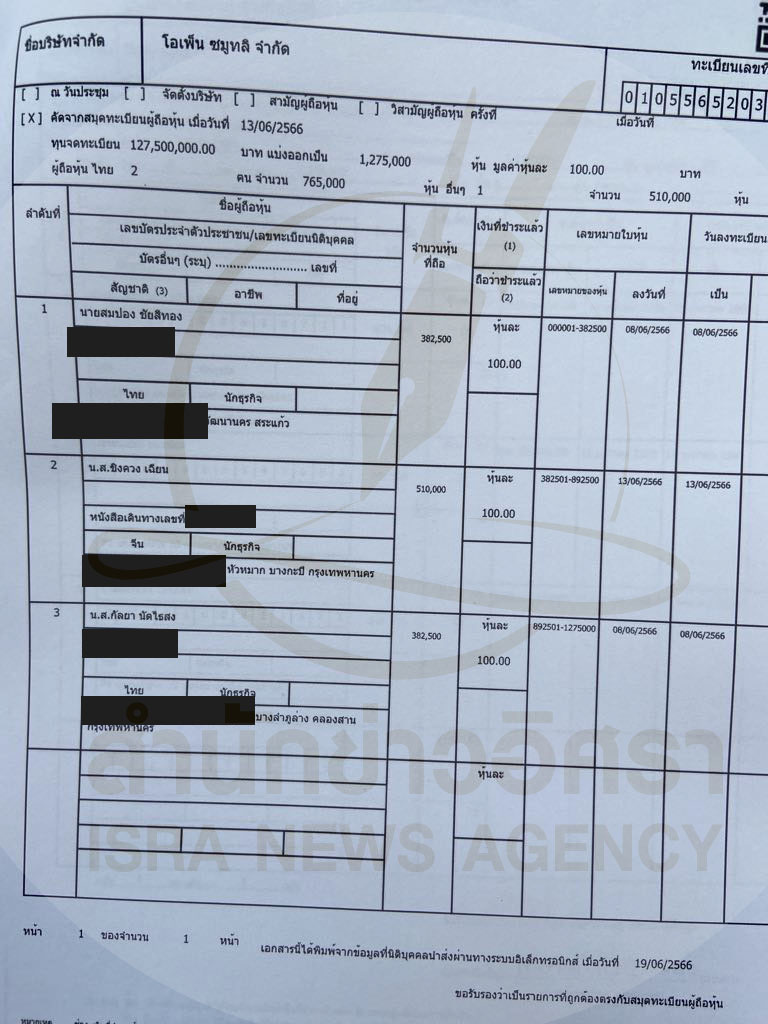 - พบ ‘เมียจ่าทร.’ ถือหุ้นเครือข่ายเหลียนเซิง 3 แห่ง 226.5 ล. - ล่าสุด บ.อสังหาฯ 2 ล. สีลม (7)