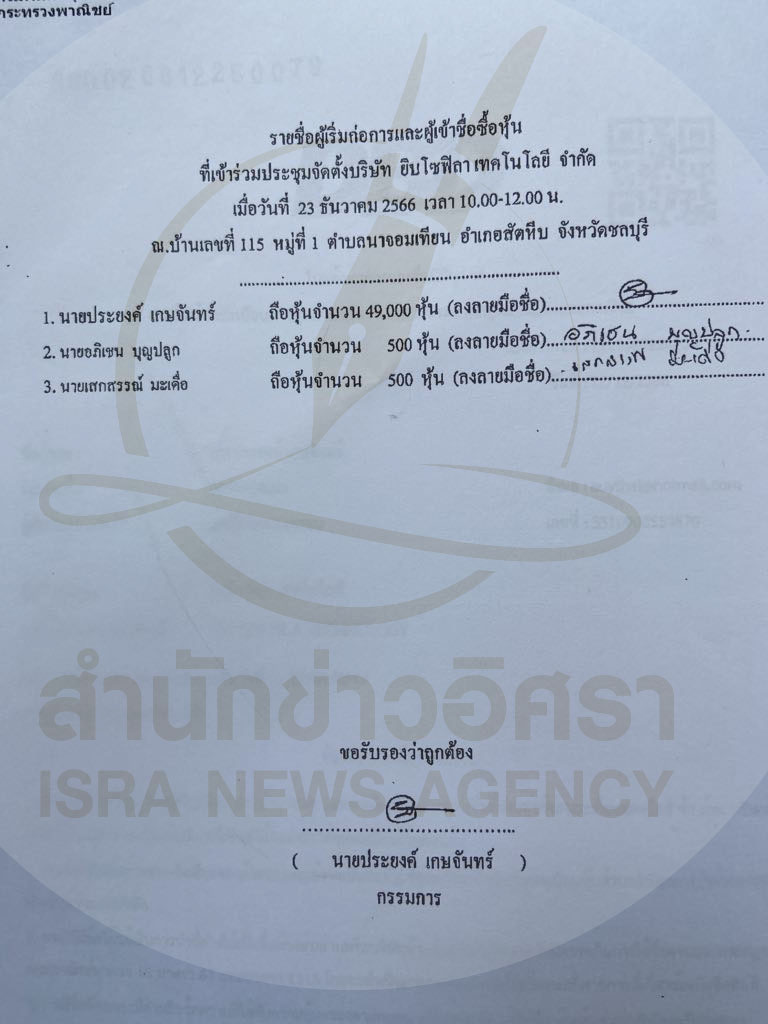 @ จดก่อตั้งในจ.ชลบุรีอีก-ผู้ถือหุ้นคนเดียวกัน