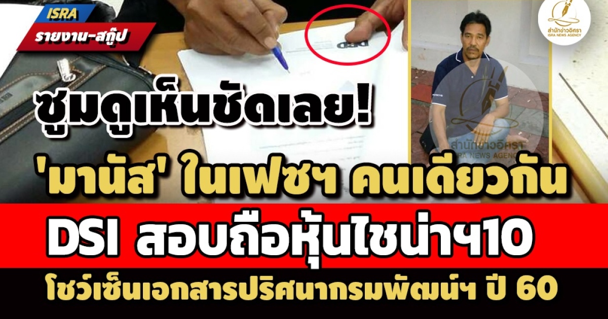เท่ากับว่า ในเฟซบุ๊ก ใช้ชื่อว่า มานัส ศรีอนันท์ กับภาพถ่ายในเอกสารกรมสอบสวนดีเอสไอ น่าจะเป็นคนเดียวกัน