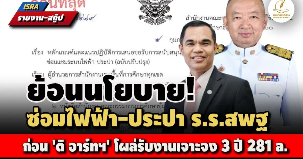 ขณะที่สำนักข่าวอิศรา สืบค้นข้อมูลพบว่า ในช่วงต้นปี 2567 สพฐ. ได้ทำหนังสือแจ้งหลักเกณฑ์และแนวปฏิบัติการเสนอขอรับการสนับสนุนงบประมาณ งบดำเนินงาน รายการค่าปรับปรุงซ่อมแซมระบบไฟฟ้า ประปา (ฉบับปรับปรุง) ไปยังผู้อำนวยการสำนักงานเขตพื้นที่การศึกษาทุกเขต ซึ่งมีการเน้นย้ำให้ปฏิบัติตามพระราชบัญญัติการจัดซื้อจัดจ้างและการบริหารหัสดุภาครัฐ พ.ศ.2560 ระเบียบกระทรวงการคลังว่าด้วยการจัดซื้อจัดจ้างและการบริหารพัสดุภาครัฐ พ.ศ.2560 และระเบียบ กฎหมาย ที่เกี่ยวข้องโดยเคร่งครัด