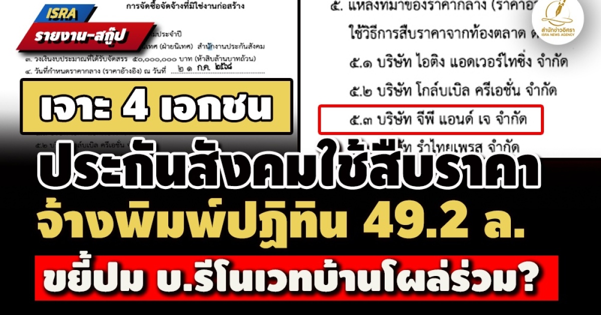 ขณะที่ผู้สื่อข่าวสำนักข่าวอิศรา ได้พยายามติดต่อ บริษัท จีพี แอนด์ เจ จำกัด และผู้บริหารสำนักงานประกันสังคม เพื่อให้ชี้แจงข้อเท็จจริงเรื่องนี้แล้ว แต่ยังไม่สามารถติดต่อได้