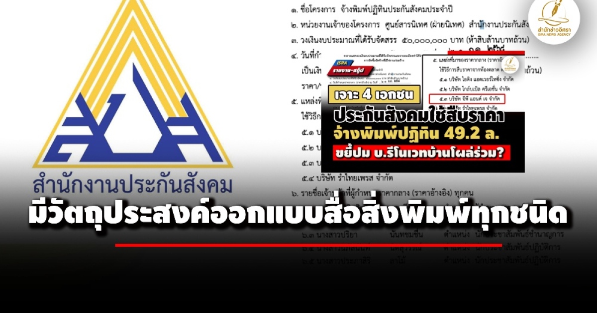 - เจาะ 4 เอกชน ประกันสังคมใช้สืบราคาจ้างพิมพ์ปฏิทิน 49.2 ล.-ขยี้ปม บ.รีโนเวทบ้านโผล่ร่วม