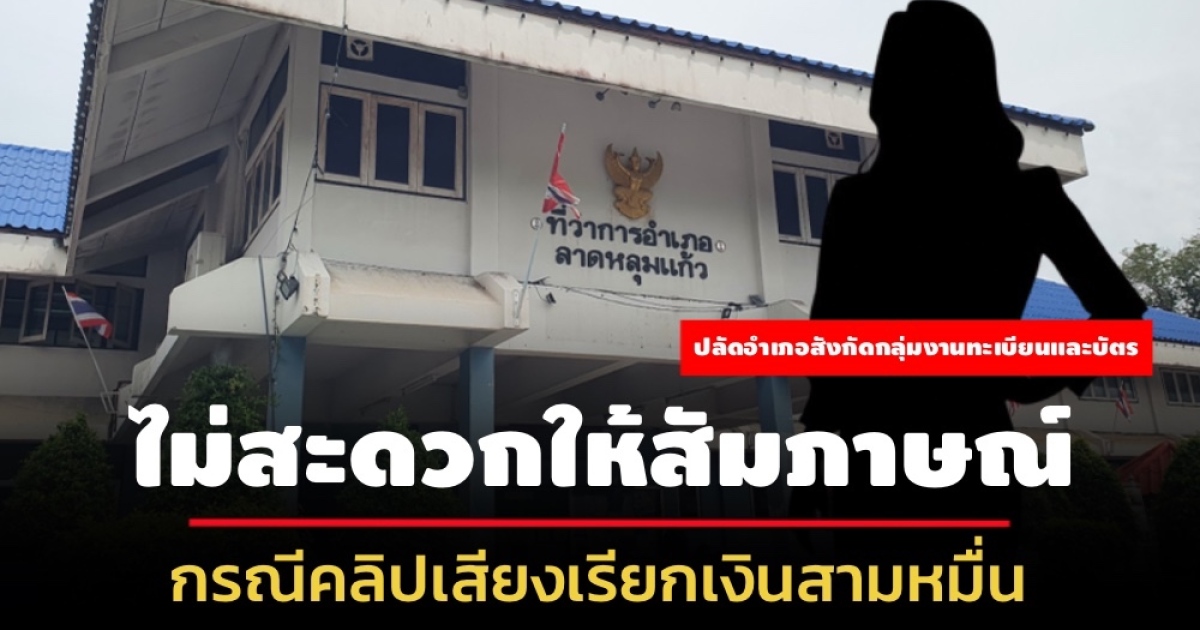 'ศิริรัตน์ อารีมิตร์' ปลัดอำเภอลาดหลุมแก้ว ยังไม่สะดวกให้สัมภาษณ์ กรณีคลิปเสียงเรียกเงินแลกออกเลขบ้านสวย จะให้ข้อมูลกับคณะกรรมการสืบสวนเท่านั้น ด้าน 'สายสุนี ไกรนรา' นายอำเภอฯ เผยอยู่ระหว่างสอบปากคำผู้ที่เกี่ยวข้อง ให้รอผล 15 วัน ระบุคลิปไม่ได้พูดที่อำเภอ ต้องดูข้อเท็จจริงอีกครั้ง