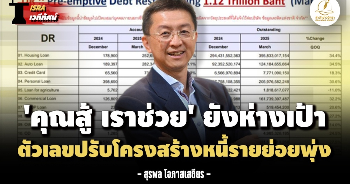 "...สิ่งนี้มันสะท้อนได้บ้างว่า คนเป็นหนี้, ไปไม่ไหว, ผ่อนติดขัด เจ้าหนี้ถูกกติกาบังคับให้ต้องยื่นข้อเสนอให้ลูกหนี้ทำ DR.ตัวเลขมันขึ้นเร็วมากจากการรายงานครั้งแรกเมื่อเมษายน 2567 เขื่อนยักษ์ DR.มันจึงยกสูงกั้นการไหลมาเป็น NPLs.อย่างที่เห็นกัน..."