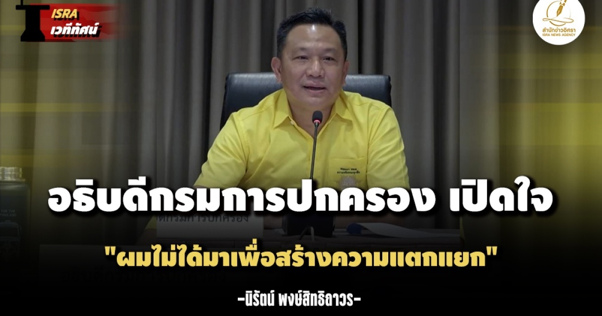 หมายเหตุ : สำนักข่าวอิศรา (www.isranews.org) นายนิรัตน์ พงษ์สิทธิถาวร อธิบดีกรมการปกครอง กล่าวมอบแนวทางการปฏิบัติราชการของอธิบดีกรมการปกครอง ณ ห้องประชุมราชบพิธ ชั้น 5 อาคารดำรงราชานุสรณ์ กระทรวงมหาดไทย เมื่อวันที่ 3 สิงหาคม 2568 ภายหลังมีประกาศพระบรมราชโองการฯ แต่งตั้งให้ดำรงตำแหน่งอธิบดีกรมการปกครอง