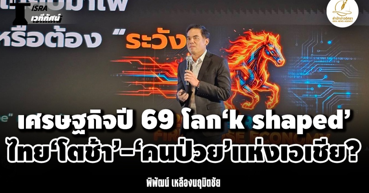 หมายเหตุ : พิพัฒน์ เหลืองนฤมิตชัย กรรมการผู้จัดการหัวหน้านักเศรษฐศาสตร์กลุ่มธุรกิจการเงินเกียรตินาคินภัทร กล่าวในหัวข้อ ‘วิเคราะห์เศรษฐกิจไทยปีม้าไฟ จะ‘ปัง’หรือต้อง‘ระวัง’? ในมุมมองนักเศรษฐศาสตร์ ภายในงาน ‘คู่หูเศรษฐกิจฝ่าวิกฤตสู่ความยั่งยืน’ จัดโดยสมาคมเศรษฐศาสตร์ธรรมศาสตร์ เมื่อวันที่ 1 ธ.ค.2568