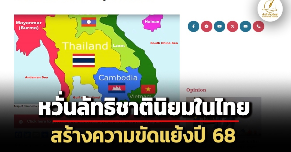 สื่อกัมพูชาตีข่าว หวั่นปี 68 ลัทธิชาตินิยมในไทย ใช้ประเด็นชายแดน โหมกระพือกิจกรรมสร้างความขัดแย้ง 2 ประเทศ ชี้มีนักการเมืองไทยใช้ประเด็นพิพาทชายแดนหาผลประโยชน์ให้ตัวเอง ก่อนนำไปสู่โฆษณาชวนเชื่อต่อต้านกัมพูชา แนะนักการเมืองรุ่นใหม่ประสานงานระหว่างประเทศมากขึ้นแก้เข้าใจผิด