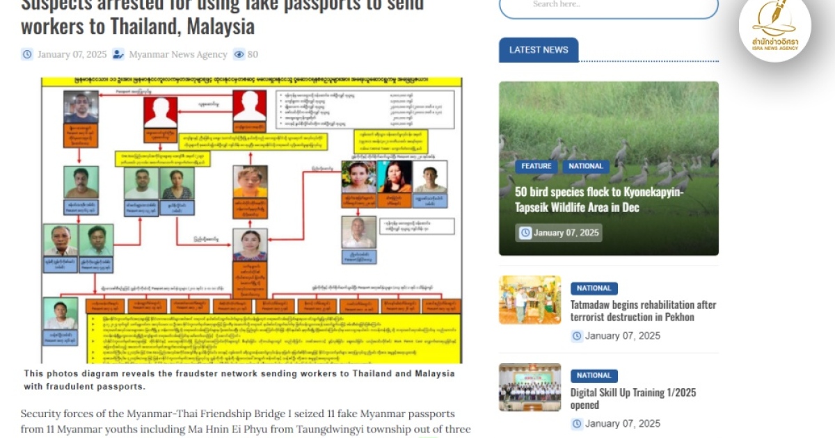 เรียบเรียงจาก:https://www.gnlm.com.mm/suspects-arrested-for-using-fake-passports-to-send-workers-to-thailand-malaysia/