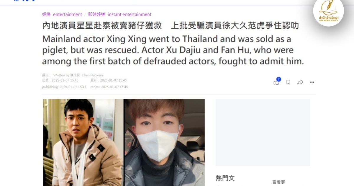 เรียบเรียงจาก:https://www.163.com/dy/article/JL8BE52V051492T3.html?f=post1603_tab_news,https://www.hk01.com/即時娛樂/1091644/內地演員星星赴泰被賣豬仔獲救-上批受騙演員徐大久范虎爭住認叻,https://www.ntdtv.com/gb/2025/01/07/a103945971.html