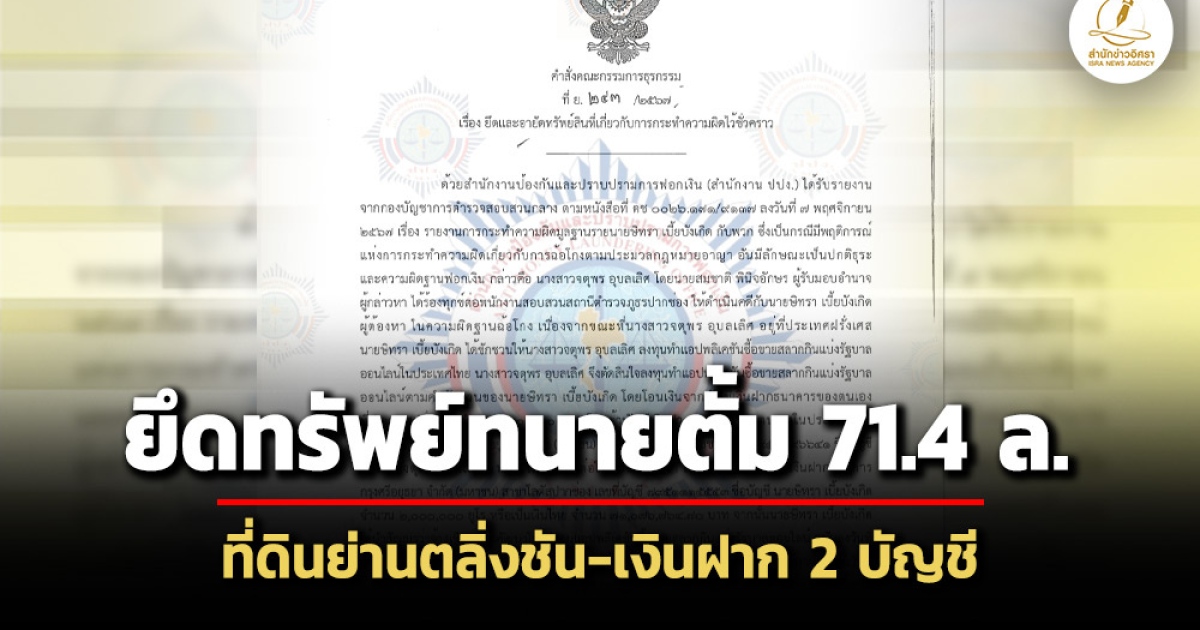ยึดอายัดทรัพย์ 3 รายการ รวม 71 ล.