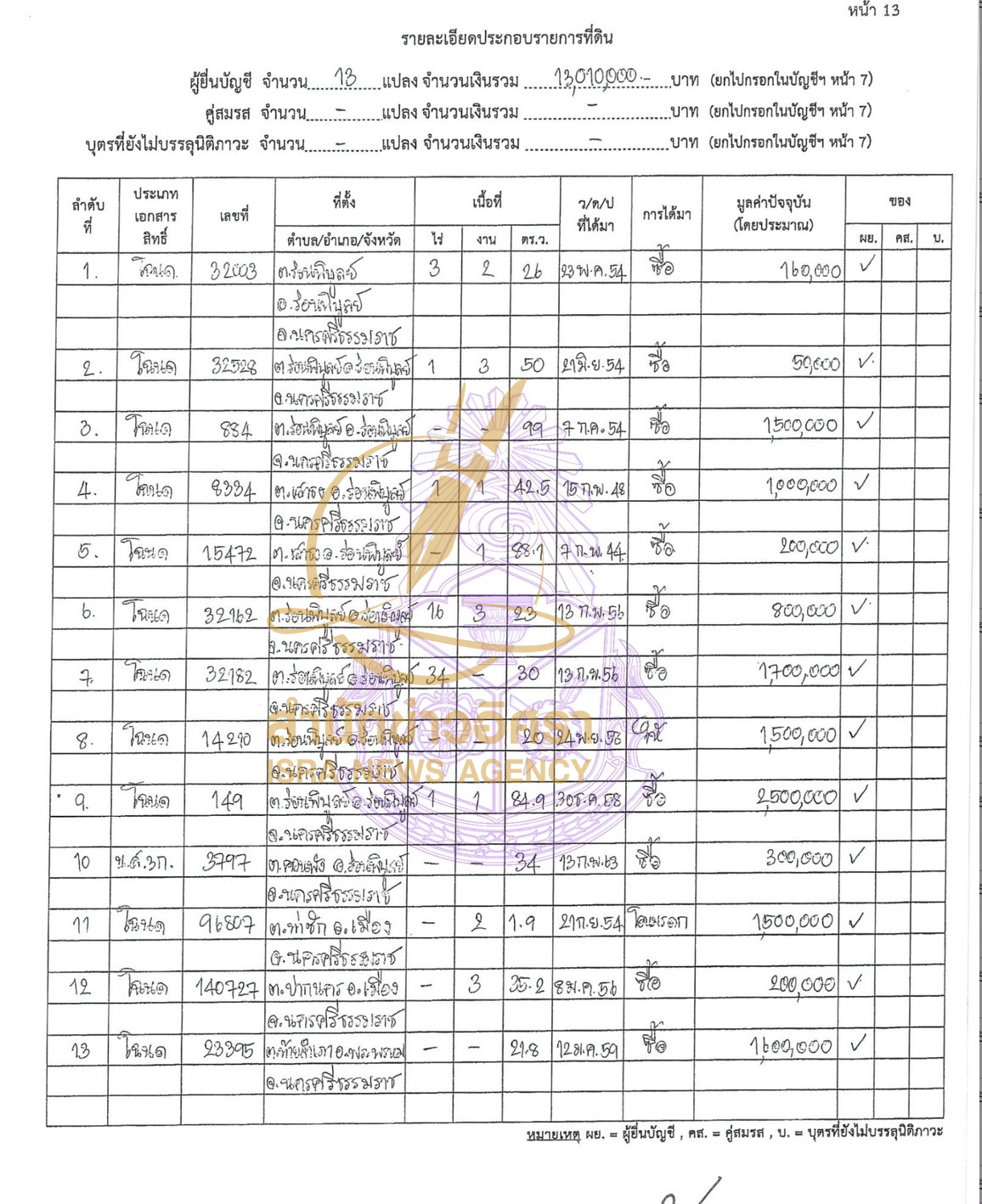 ป.ป.ช. เปิดทรัพย์สิน 'กนกพร เดชเดโช' อดีตนายกอบจ.นครศรีธรรมราช ทรัพย์สิน 25 ล. ที่ดิน 13 ล. รายได้ 2.2 ล./ปี