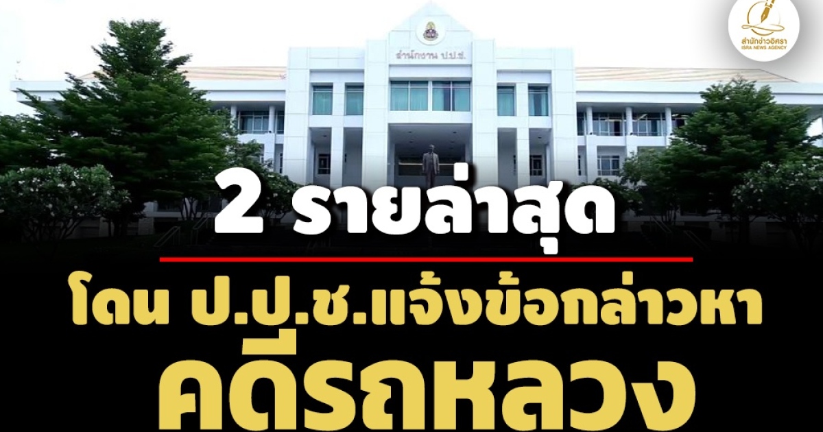 ป.ป.ช. แจ้งข้อกล่าวหาคดีใช้รถหลวง 2 ราย รวด 'จิระวัชร มัฎฐารักษ์' อดีตปลัด อบต.ท่ากระดาน นำรถทะเบียน กง 4352 ฉะเชิงเทรา ไปใช้ประโยชน์ส่วนตัว - 'ธงชัย ตรีวิบูลย์วาณิชย์' อดีตผอ.โรงพยาบาลชัยภูมิ ใช้ตู้นั่งสี่ตอนทะเบียน นข 3390 ชัยภูมิ เสมือนรถประจำตำแหน่ง พ่วงจัดซื้อมิชอบ