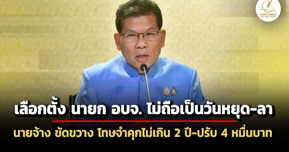 คารม พลพรกลาง รองโฆษกประจำสำนักนายกรัฐมนตรี เตือน นายจ้าง ขัดขวาง-ไม่อำนวยความสะดวก ลูกจ้าง ไปใช้สิทธิ์ เลือกตั้ง อบจ. - นายก อบจ. วันเสาร์ที่ 1 กุมภาพันธ์ 68 ผิดกฎหมายเลือกตั้งท้องถิ่น มีโทษจำคุกไม่เกินสองปี - ปรับไม่เกิน 40,000 บาท หรือ ทั้งจำทั้งปรับ