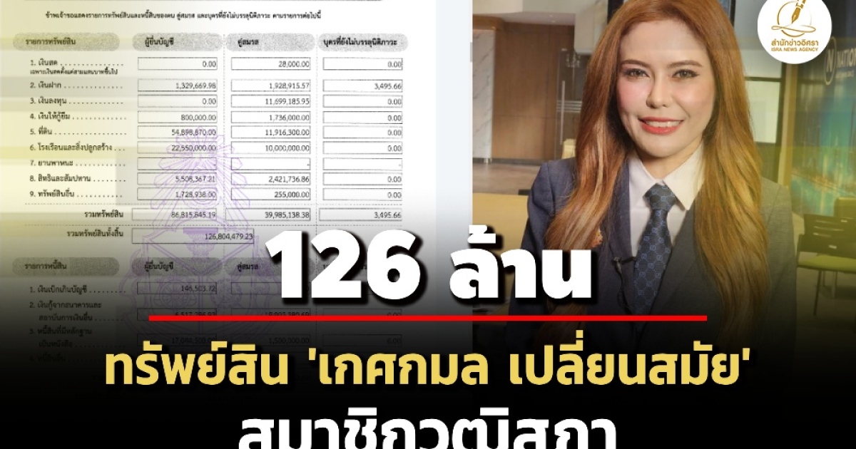 ป.ป.ช. เปิดทรัพย์สิน 'เกศกมล เปลี่ยนสมัย' สมาชิกวุฒิสภา ทรัพย์สิน 126 ล. ที่ดิน 54 ล. รายได้ 7.8 แสน/ปี-มีรายได้จากการแขวนป้ายหมอ 2.1 แสน