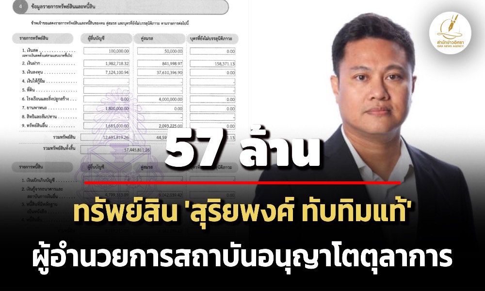 ป.ป.ช. เปิดทรัพย์สิน 'สุริยพงศ์ ทับทิมแท้' ผู้อำนวยการสถาบันอนุญาโตตุลาการ ทรัพย์สิน 57 ล. รายได้ 2.7 ล./ปี