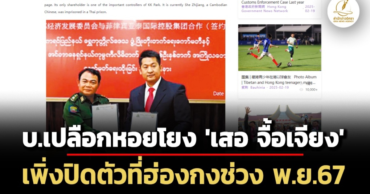 สื่อจีนเผยเอกชนเชื่อมโยง ‘เสอ จื้อเจียง’ ผู้ต้องหาคดีเว็บพนัน เพิ่งปิดตัวที่ฮ่องกงไปช่วง พ.ย.67 คาดเป็นแค่บริษัทเปลือกหอย นำเงินไปใช้ในโครงการสร้างเมืองใหม่ที่เมียวดี เผยก่อนปิดตัวบริษัทเคยมีวิดีโออ้างมีทรัพย์สินถึงแสนล้าน พนักงานมากกว่า 3,500 คน มีสาขาที่ประเทศไทยด้วย