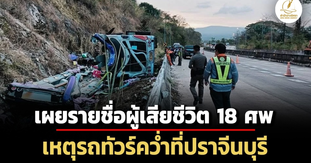 เผยรายชื่อผู้เสียชีวิต 18 ศพ เหตุรถทัวร์คว่ำที่ปราจีนบุรีช่วงเช้ามืด บาดเจ็บอีกนับสิบ หวั่นยอดเสียชีวิตพุ่งเกิน 20 ศพ เกินวงเงินความคุ้มครองประกันภาคสมัครใจ