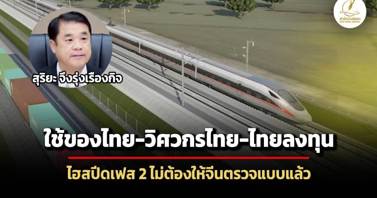 ‘สุริยะ’ เผยวงประชุมรถไฟไทยจีนสรุป ‘ไฮสปีดไทยจีนช่วงที่ 2 โคราช-หนองคาย’ จีนไม่ต้องตรวจแบบแล้ว ไทยทำเองทั้งหมด ดันก่อสร้างภายในปีนี้ ปิดทางประมูลอินเตอร์ ลงทุนเองหมด ส่วนเฟส 1 กทม.-โคราช ลากเสร็จปี 72 ‘วีริศ’ เผยใช้เหล้ก ‘ทาทาสตีล’ ไม่มีเหล็กจีน ส่วนงานสัญญา 3-1 ที่มี ‘ไชน่าเรลเวย์ 10’ ร่วมด้วยนั้น จะให้สถาบันเหล็กกล้าเข้าไปสแกน 2 วันรู้เรื่อง