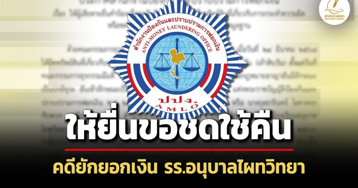 แพร่ประกาศ ปปง.ให้ผู้เสียหายยื่นคำร้องขอรับ-ชดใช้คืนทรัพย์สิน คดี ปริศนา ดวงจินดา/กุลธารินทร์ โยคาพจร กับพวก นำส่งเงินรายได้เข้าบัญชีเงินฝากธนาคารของโรงเรียนอนุบาลไผทวิทยา ล่าช้าผิดปกติ เสียหาย 5.8 ล้าน หลัง คกก.ธุรกรรมสั่งอายัดทรัพย์สินเกี่ยวกับการกระทำผิดไว้ชั่วคราว เจ้าของแจ้งความ ตร. จ.นครปฐม คดีอยู่ในชั้นศาล