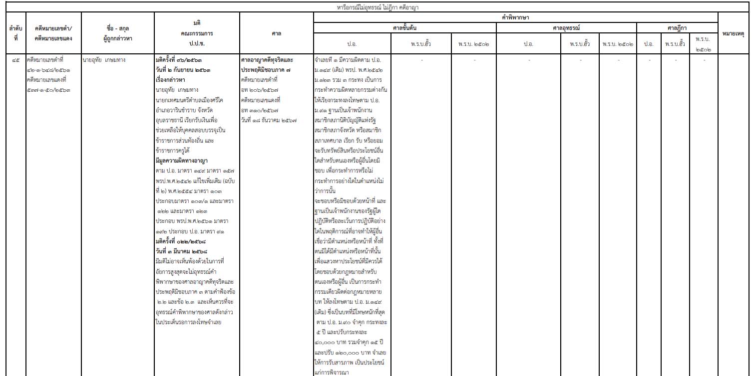 ความคืบหน้าคดีล่าสุด เมื่อวันที่ 18 ธันวาคม 2567 ศาลอาญาคดีทุจริตและประพฤติมิชอบภาค 7 มีคำพิพากษาว่า นายอุทัย เกษมทาง จำเลยที่ 1 มีความผิดตามกฏหมาย ลงโทษจำคุกกระทงละ 5 ปี และปรับกระทงละ 40,000 บาท รวมจำคุก 15 ปี และปรับ 120,000 บาท