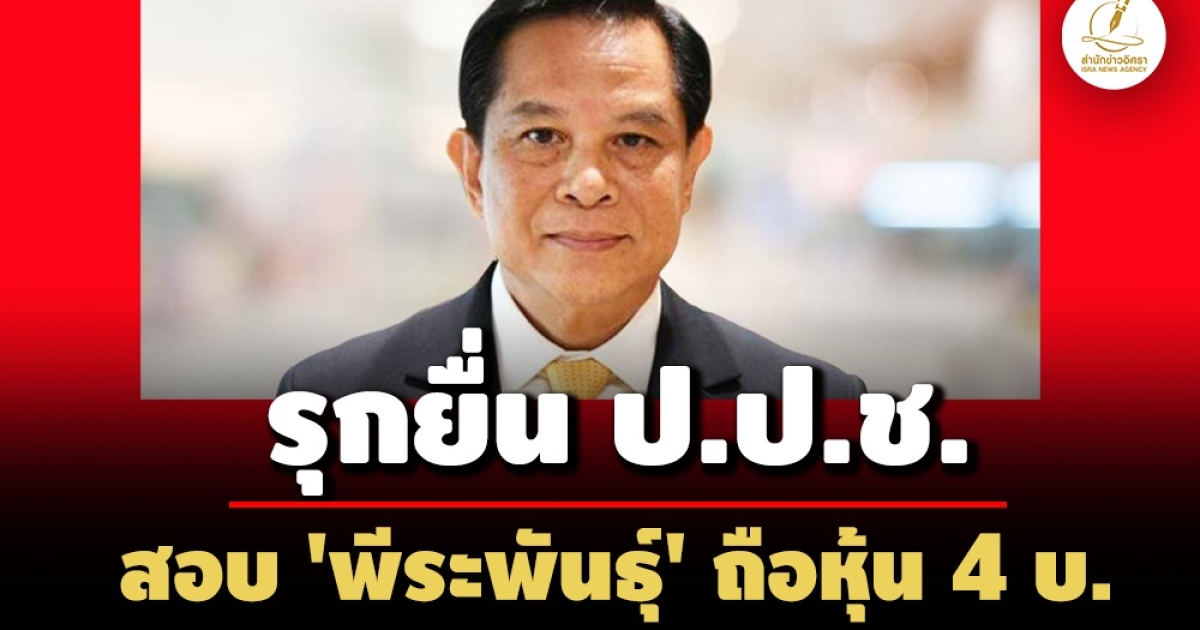 'สนธิญา สวัสดี' ดีเดย์ 2 พ.ค.นี้ รุกยื่นข้อมูล ป.ป.ช.สอบเพิ่ม พีระพันธุ์ สาลีรัฐวิภาค รองนายกรัฐมนตรี - รมว.กระทรวงพลังงาน ถือครองหุ้น 4 บริษัท ขุดเจองบการเงิน แจ้งกรมพัฒน์ ไม่จัดการปันทรัพย์มรดก เจตนายึดถือไว้เป็นประโยชน์ส่วนตน เกินระยะเวลา 5 ปี มีทรัพย์สินเพิ่ม 21 ล้านเศษ กู้ยืมเพื่อลงทุน 14 ล้าน