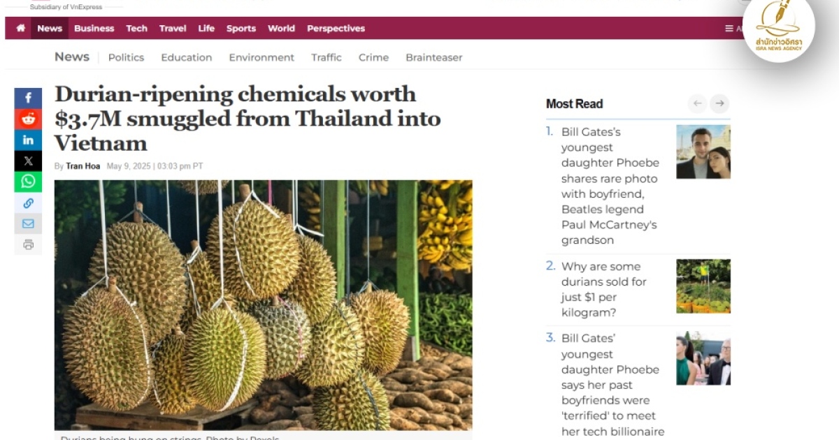 เรียบเรียงจาก:https://e.vnexpress.net/news/news/durian-ripening-chemicals-worth-3-7m-smuggled-from-thailand-into-vietnam-4883813.html
