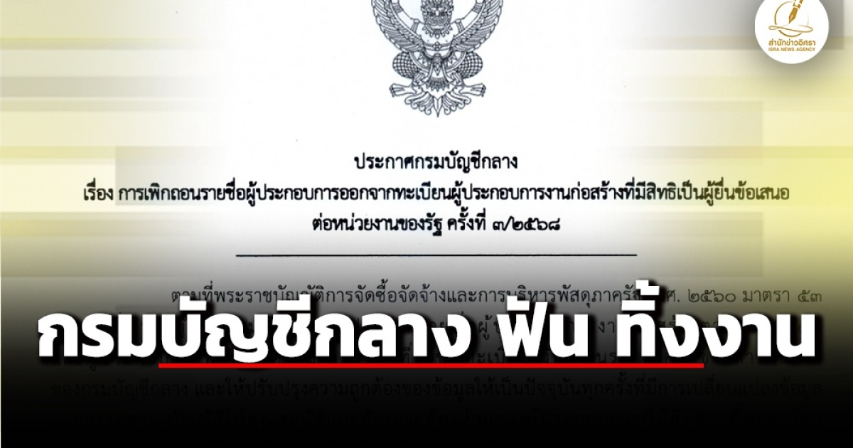 กรมบัญชีกลางพิจารณาแล้วเห็นว่า จากการตรวจสอบคุณสมบัติของผู้ประกอบการที่ได้รับการประกาศรายชื่อผู้ประกอบการงานก่อสร้างที่มีสิทธิเป็นผู้ยื่นข้อเสนอต่อหน่วยงานของรัฐ ปรากฏว่า มีผู้ประกอบการเข้าลักษณะต้องห้ามของผู้ประกอบการที่มีสิทธิขอขึ้นทะเบียนตามกฎกระทรวงกำหนดหลักเกณฑ์เกี่ยวกับผู้ที่มีสิทธิขอขึ้นทะเบียนผู้ประกอบการ พ.ศ. 2560 หมวด 1 คุณสมบัติและลักษณะต้องห้ามของผู้ประกอบการที่มีสิทธิขอขึ้นทะเบียน ข้อ 3 (8) ต้องไม่เป็นบุคคลซึ่งถูกแจ้งเวียนชื่อให้เป็นผู้ทิ้งงานของหน่วยงานของรัฐตามมาตรา 109 แห่งพระราชบัญญัติการจัดซื้อจัดจ้างและการบริหารพัสดุภาครัฐ พ.ศ. 2560 และขาดคุณสมบัติตามประกาศคณะกรรมการราคากลางและขึ้นทะเบียนผู้ประกอบการ เรื่อง หลักเกณฑ์ วิธีการ และเงื่อนไขในการขึ้นทะเบียนผู้ประกอบการงานก่อสร้างที่มีสิทธิเป็นผู้ยื่นข้อเสนอต่อหน่วยงานของรัฐ ลงวันที่ 18 กันยายน 2567’