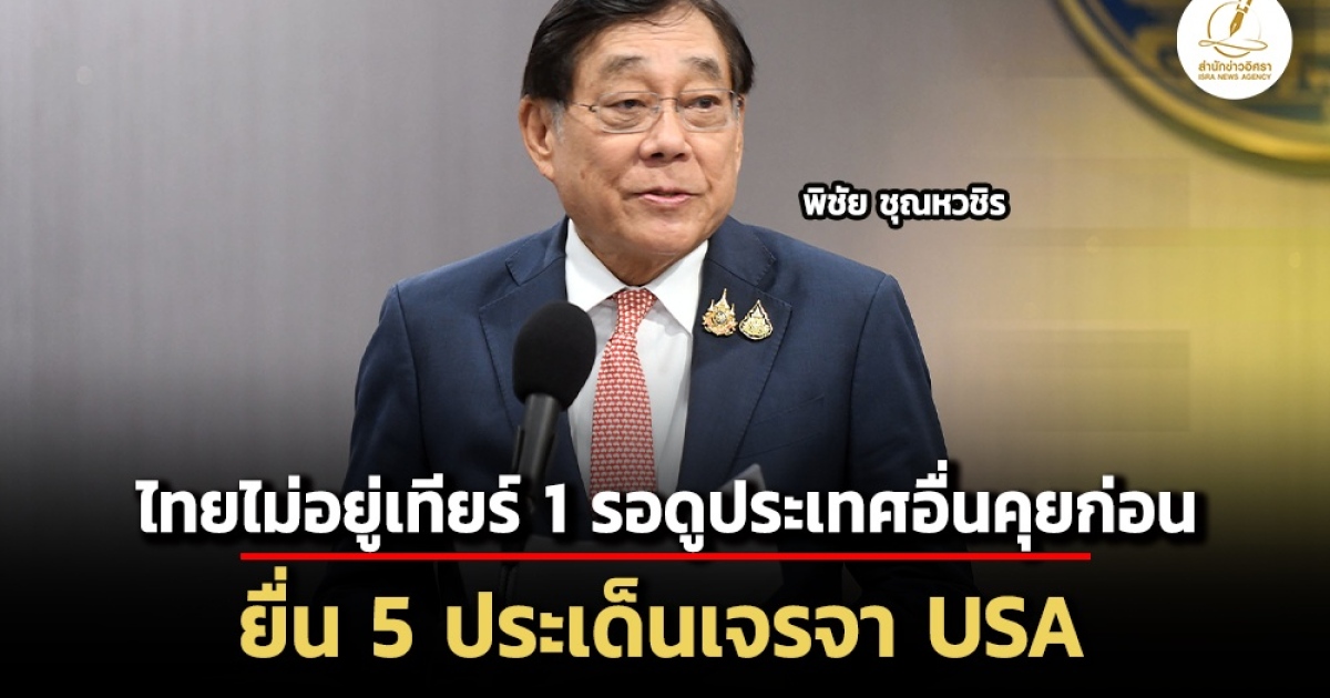 ‘พิชัย ชุณหวชิร’ อัพเดทหารือสหรัฐฯ ประเด็นกำแพงภาษี เผย 5 ประเด็นหลักพูดคุย ส่วนการนัดหารือยังไม่ได้เวลา เพราะไทยไม่อยู่เทียร์ 1 ต้องรอดูประเทศอื่นคุยไปก่อน ยันไม่ได้ช้า แค่รอเวลาเหมาะสม