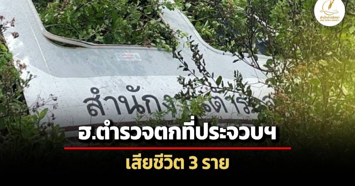 มีรายงานเฮลิคอปเตอร์ตำรวจตกที่ จ.ประจวบคีรีขันธ์ เบื้องต้นพบเจ้าหน้าที่ตำรวจเสียชีวิต 3 ราย ผบ.ตร.เสียใจ สั่งการตรวจสอบ-เยียวยาครอบครัวผู้เสียชีวิต