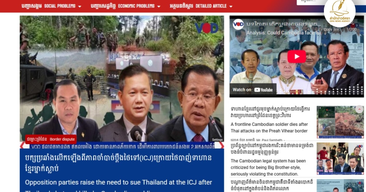 ฝ่ายค้านกัมพูชาจี้รัฐบาลนำเรื่องขึ้น ICJ หลังเหตุปะทะระหว่างทหารไทย-กัมพูชา อดีต สส.เชื่อเหตุที่รัฐบาลตระกูลฮุนยังไม่กล้านำเรื่องขึ้น ICJ เพราะต้องการให้ฝั่งไทยปิดปากฝ่ายค้าน-ช่วยปิดข่าวเรื่อง ‘ลิม คิยา’ ขณะ ‘สม รังสี’ จี้รัฐบาลดึงฝรั่งเศสมาช่วยยุติข้อพิพาท