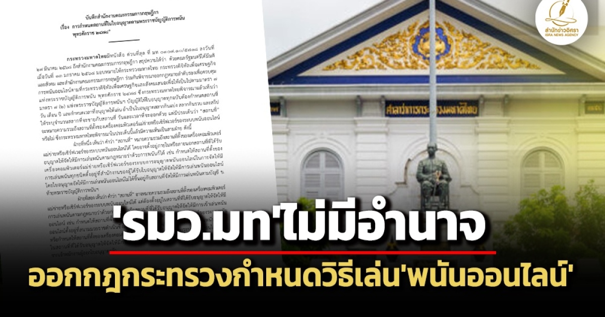 ‘กฤษฎีกา’ ชี้ พ.ร.บ.การพนัน พ.ศ.2478 ไม่ได้ให้อำนาจ ‘รมว.มหาดไทย’ ออกกฎกระทรวงกำหนดหลักเกณฑ์ จัดเก็บรายได้-วิธีการเล่น ‘พนันออนไลน์’
