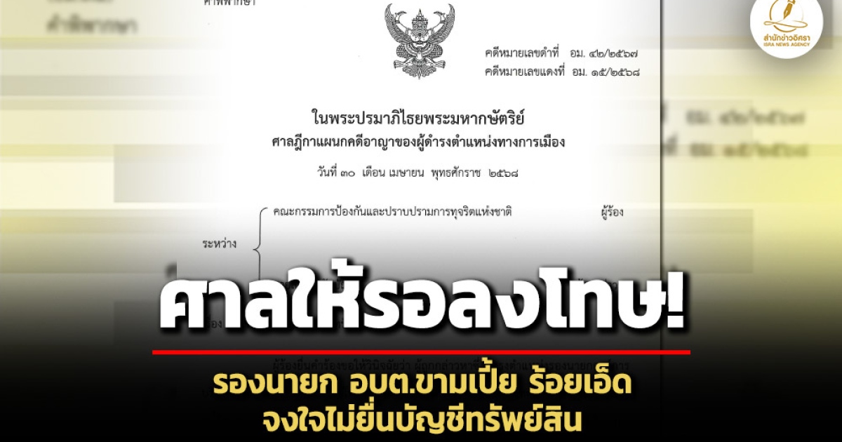 - ศาลฎีกาฯสั่งจำคุก 1 เดือน -รอลงโทษ รองนายกเทศฯ ต.โพธิ์ชัย ร้อยเอ็ด ยื่นบัญชีฯเท็จ